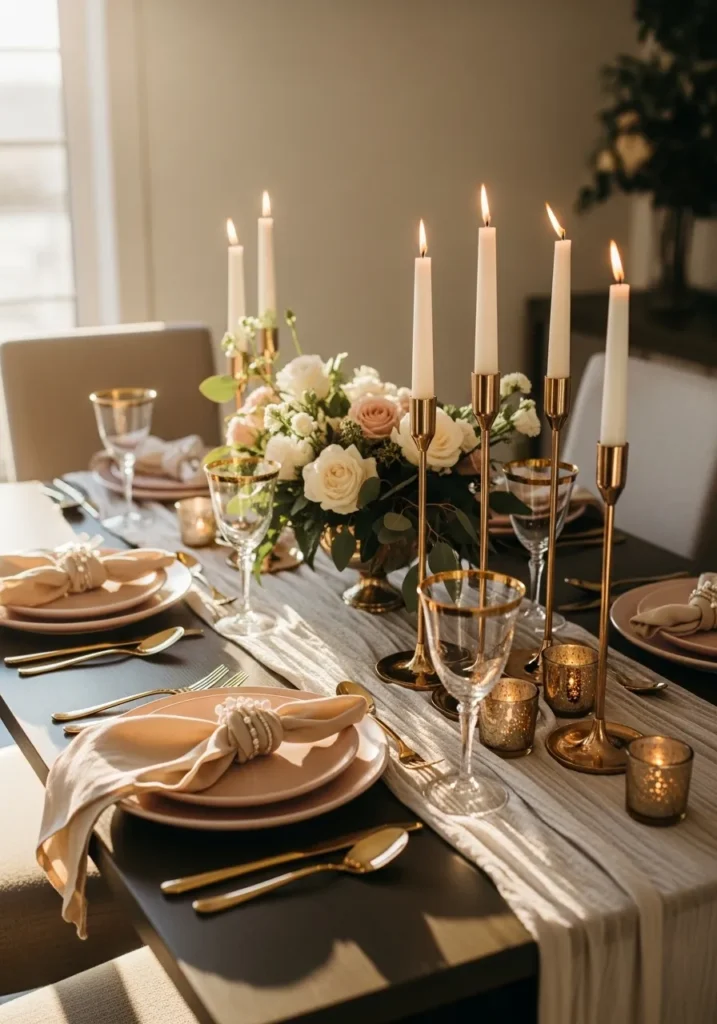 I absolutely adore how this feels both classic and modern at once. The gold tones add a festive touch without going overboard, and the candlelight makes everything feel cozy and beautiful.