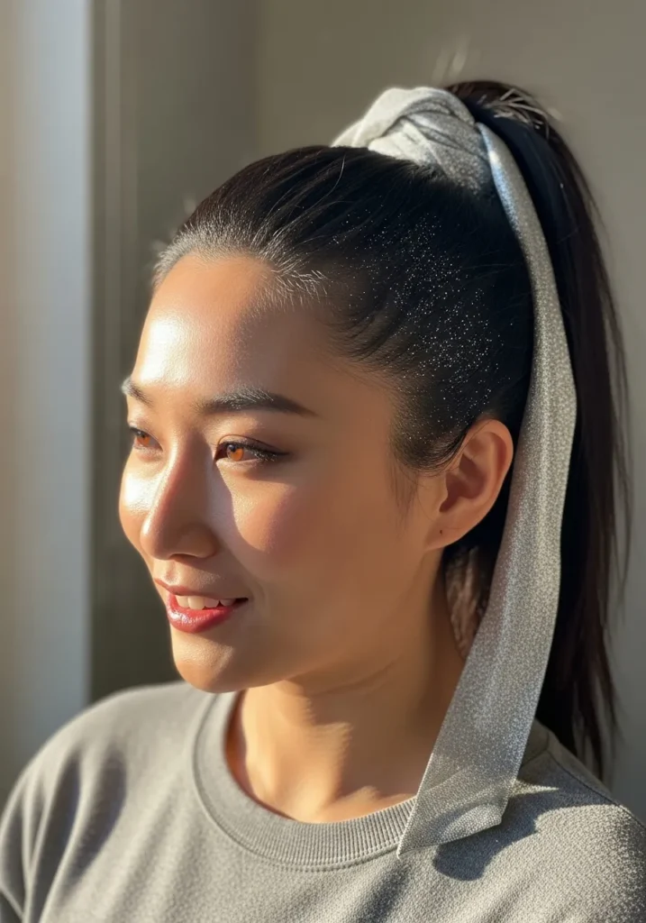 There’s something about a high ponytail that always makes me feel confident and ready to party. The silver ribbon adds instant New Year’s energy, and I adore how it catches the light every time I turn my head. It’s playful but still looks super polished.
