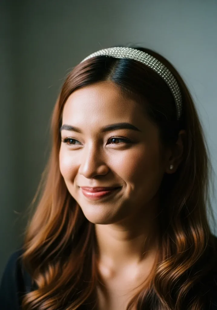 I’m obsessed with how this look balances glam and simplicity. The headband does all the talking while the waves frame the face so beautifully. It’s the kind of hairstyle that looks like you spent hours on it, even if it took ten minutes to pull together.