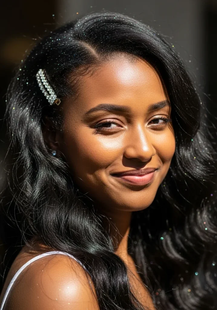 I love how a few sparkly clips or shimmering strands can turn even the simplest hairstyle into something magical.
