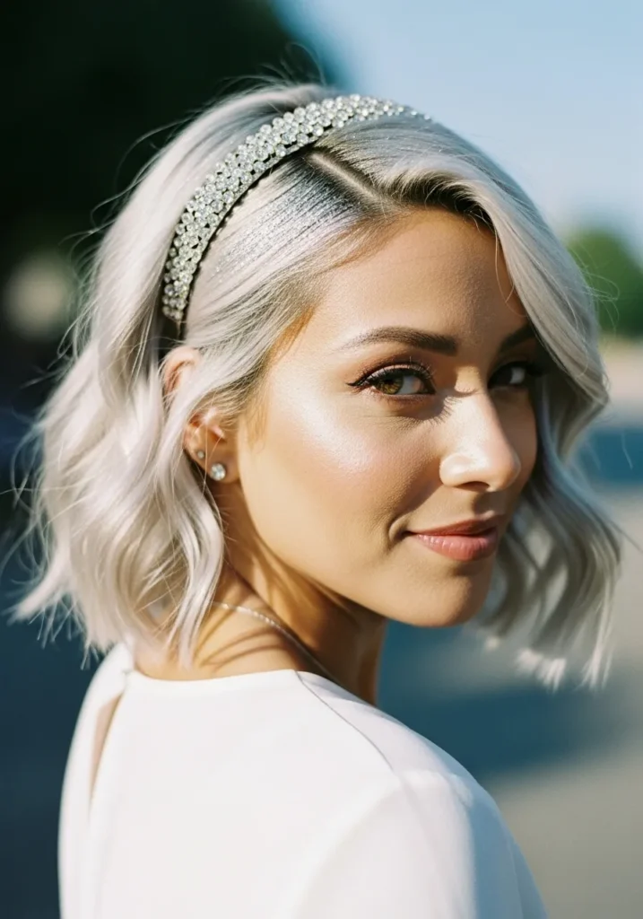 Wavy Platinum Bob with Crystal Headband