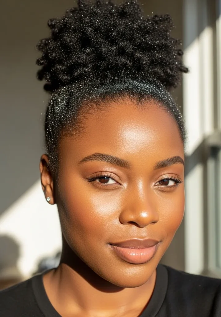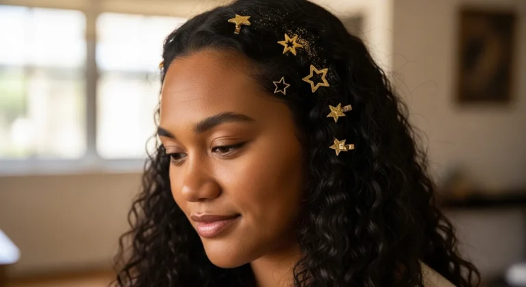 I’m all about this kind of statement hairstyle. It celebrates natural curls in the best way, and the glitter gives it that festive flair that makes it feel special. It’s confident, radiant, and perfect for ringing in the New Year.