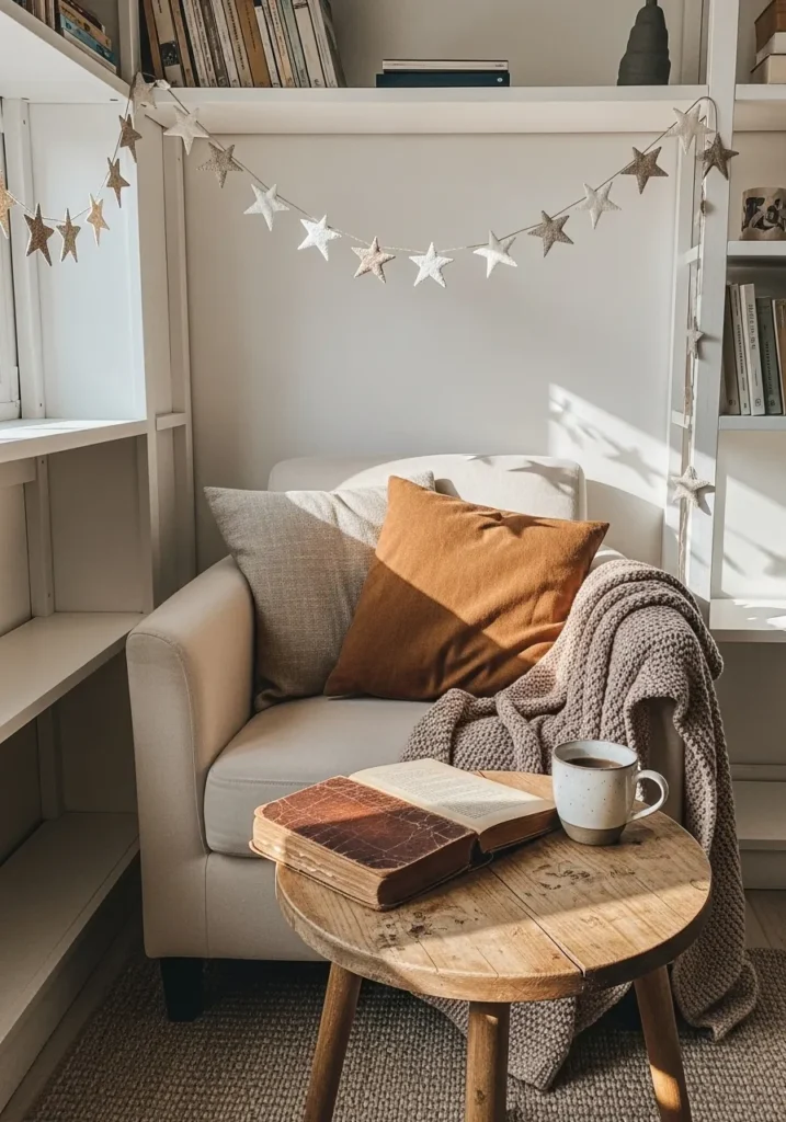 Cozy Reading Nook with Handmade Star Garland