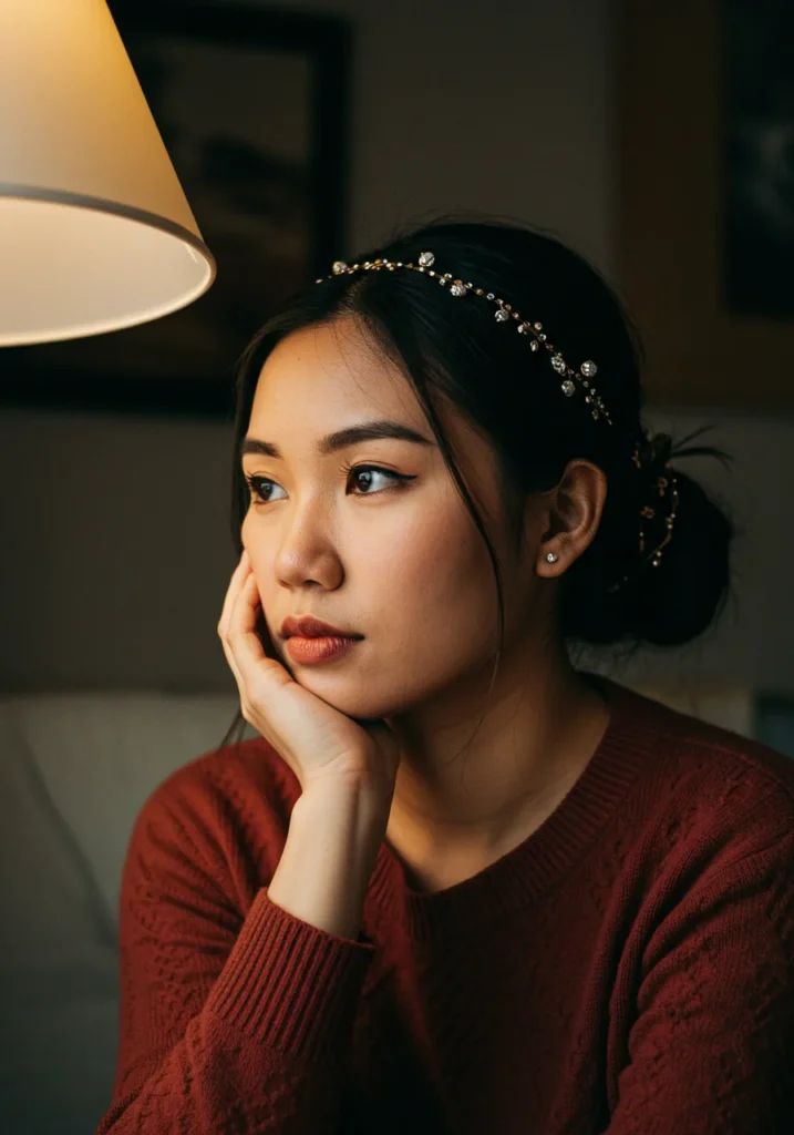 I love how this look feels graceful yet approachable. The sparkle sits just right — not too bold, not too subtle. It’s the kind of hairstyle that makes me feel like I’ve walked straight out of a winter romance movie.