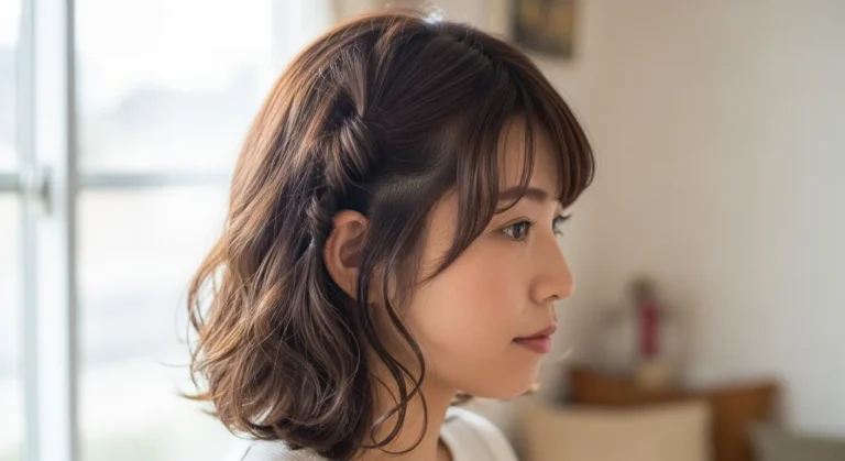 I love how this hairstyle feels laid-back but still polished. It’s perfect for when I want to look cute without overthinking it. The bangs add a sweet, youthful touch that makes even a messy bun feel intentional.
