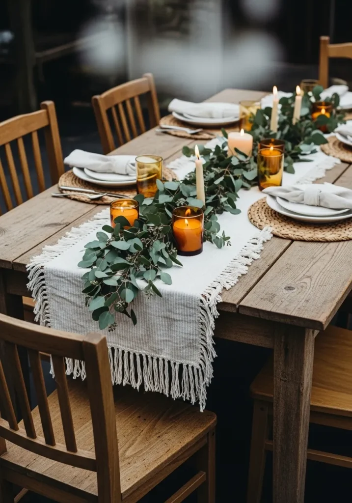 I absolutely adore how effortlessly beautiful this setup feels. The combination of greenery, candlelight, and natural textures makes the whole table come alive without feeling overdone. It’s the kind of space that makes you want to linger long after dinner, chatting and laughing by candlelight with your favorite people.