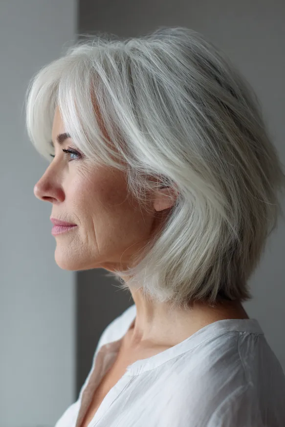 Elegant Silver Bob with Soft Layers