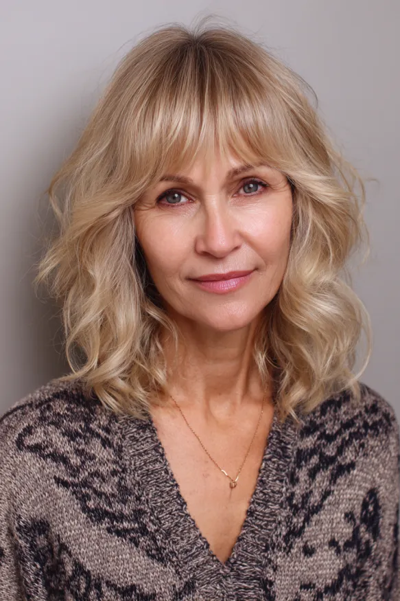 Blonde Beachy Waves with Soft Curtain Bangs
