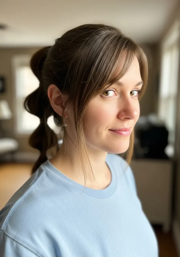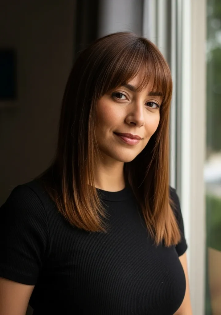 I can never resist a fringe moment. It makes straight hair feel cozy and modern all at once. It’s a flattering choice that looks great in photos—especially with a little sparkle in the outfit.