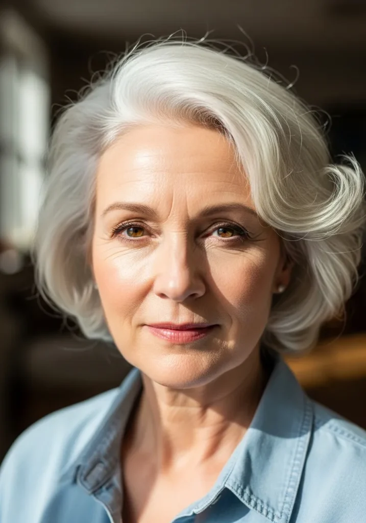 I love how empowering this look feels. It proves that classic beauty has no age limit. The soft volume frames the face perfectly, and the silver hue adds instant sophistication. It’s the kind of hairstyle that makes you stand taller.