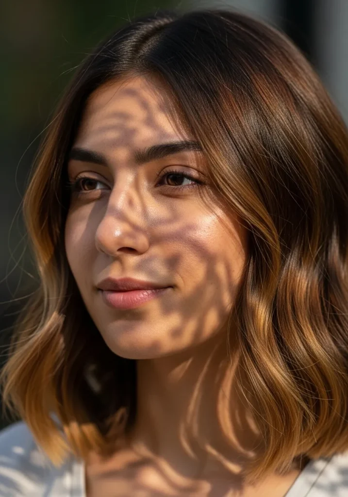 This look combines gentle waves with warm, light brown tones and sunlit highlights that add natural dimension. The soft texture makes the hair feel light and touchable, while the middle part frames the face beautifully. The waves are loose and natural, creating that “perfectly undone” kind of chic.
