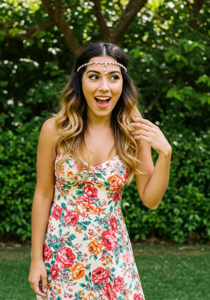This hairstyle is perfect for when I want something that looks stunning without too much work. The waves give that natural volume I love, and the jeweled headband makes me feel like a holiday goddess ready for the spotlight.