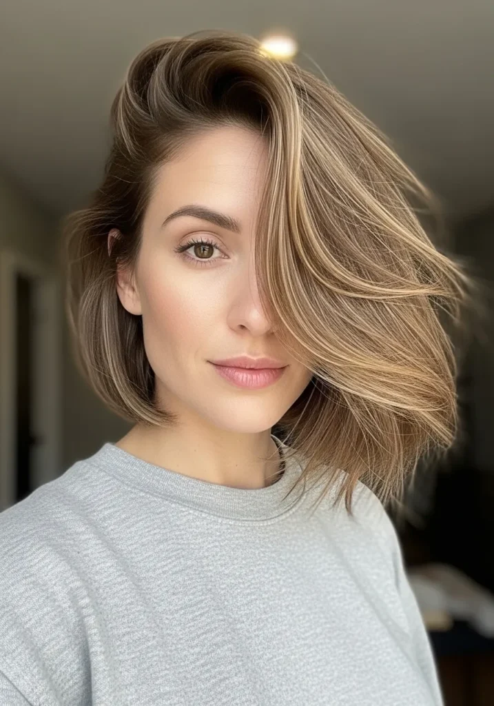 I love how this kind of angled bob gives my face an instant lift. The side sweep feels flattering in that effortless way that makes me look put together even when I’m rushing out the door. The layers keep everything light and bouncy so my hair never feels bulky. It is one of those cuts that makes me feel polished and playful at the same time.
