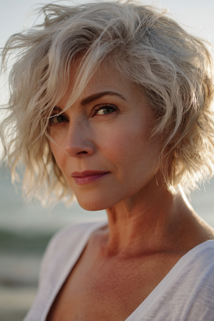 No matter your age this short and sassy look is such a power move for the summer. I love it because shorter hair is so much easier to manage when you are dealing with wind and salt since it won’t tangle into a massive knot at the nape of your neck. It feels very flattering because the layers add a lift that brightens up the entire face while the messy styling means you can just shake it out and go. If you are into a low maintenance style that still packs a high fashion punch this icy bob is your absolute best bet.