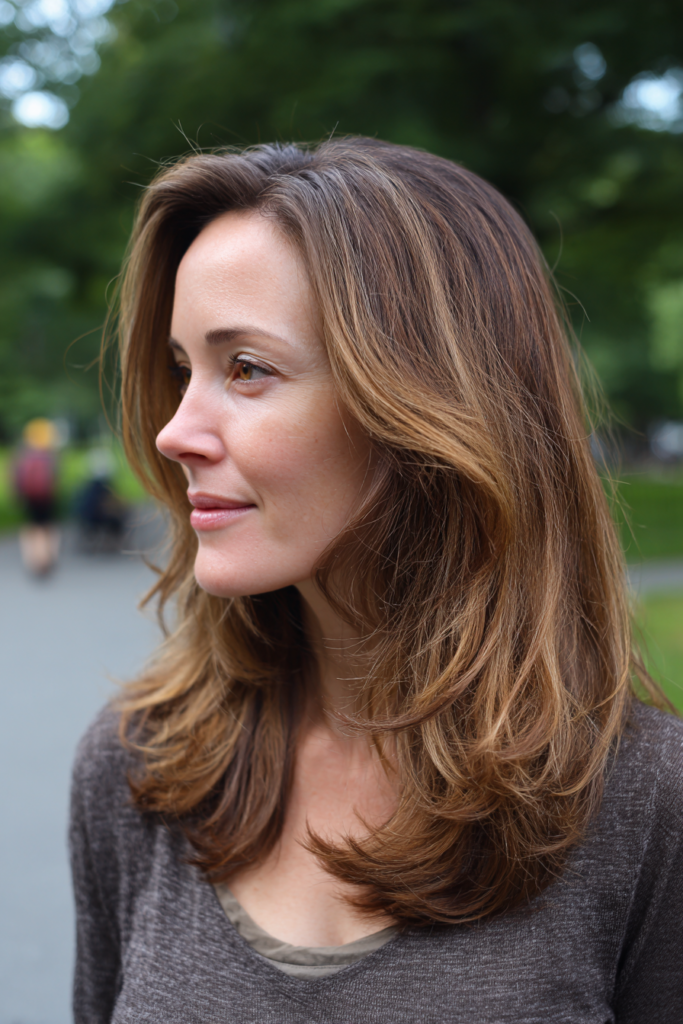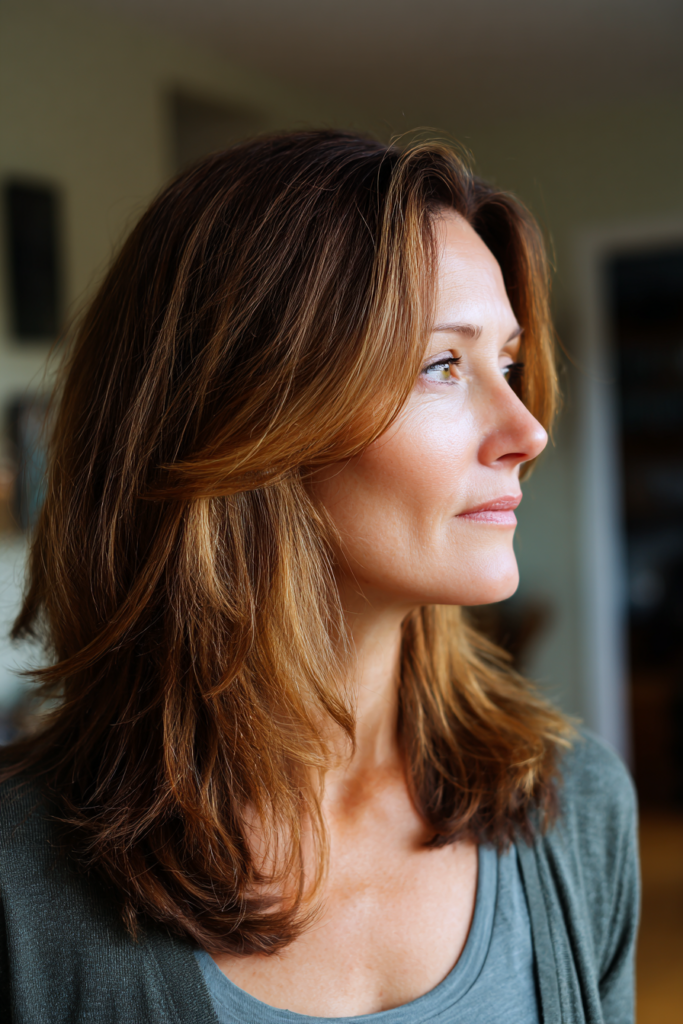 Layers really come alive when you add a bit of color dimension. Soft highlights are a favorite because they catch the light and show off every layer. Think warm caramel, honey blonde, or subtle ash tones depending on your base color.
