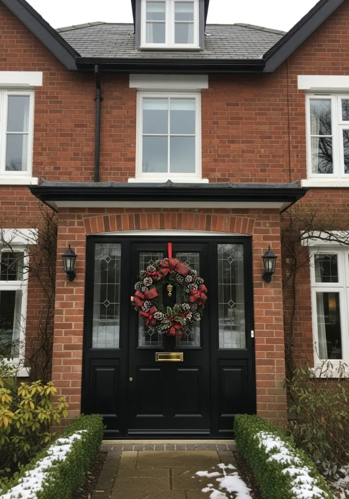 I love how simple yet festive this design feels. The candy-cane inspired ribbons instantly remind me of cozy winter mornings and warm holiday cheer. It’s the kind of front door that makes you smile before you even step inside.