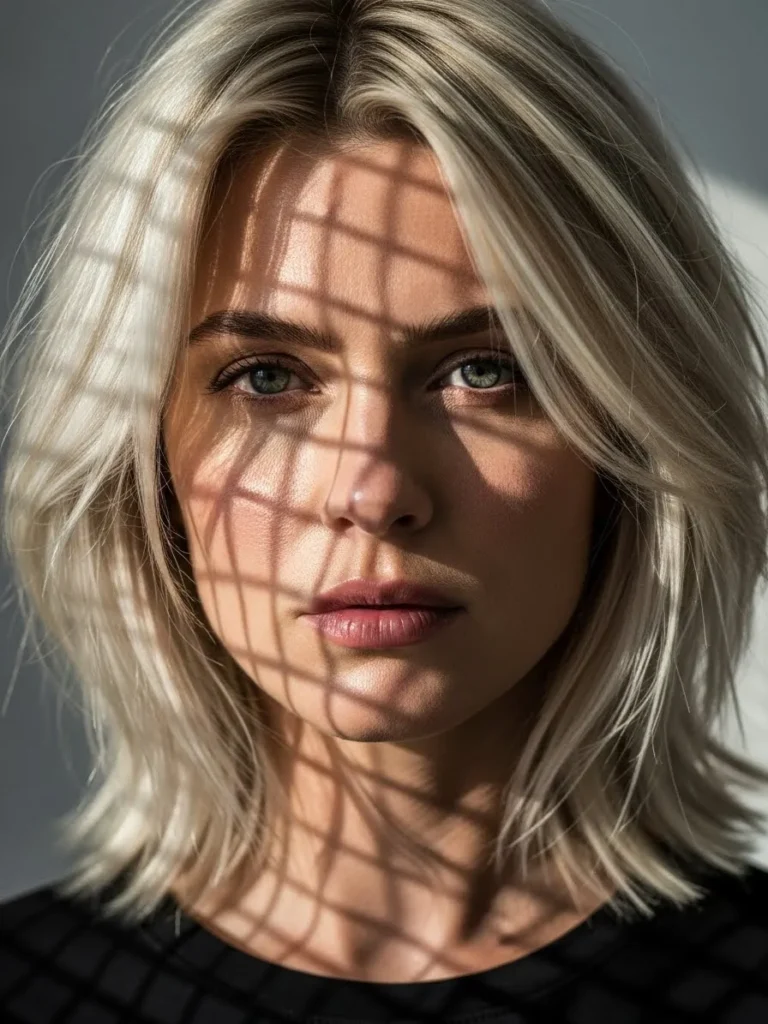 This bob falls at a mid length with gentle choppy layers that frame the face. The soft beige tone warms the hair and gives a natural glow. The texture is subtle but still adds enough movement to keep the cut from feeling too heavy.