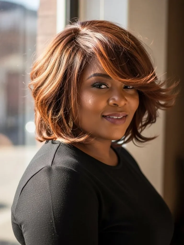 A warm copper bob like this always makes me feel polished without losing any of that fun choppy energy. The shape flatters my thicker hair because it looks full in a controlled way. The shine is just the bonus that makes me want to flip my hair every chance I get.