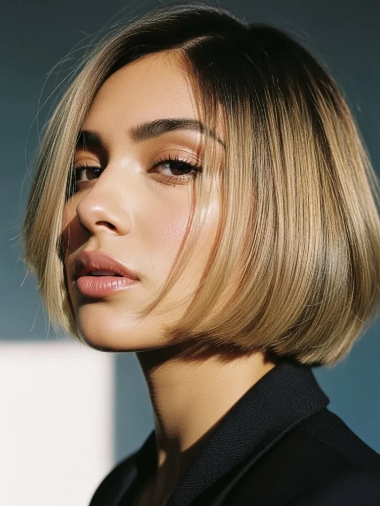 A smooth bob like this gives me that polished feeling even when I keep the rest of my look simple. The shape flatters thick hair by giving it structure and the blonde tone adds a soft brightness. It is a perfect mix of neat and stylish.