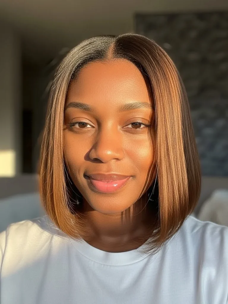 I’m obsessed with how this bob gives off a natural, sun-kissed vibe. The straight layers are so sleek, and the shine makes it look effortlessly polished. It’s perfect for someone who wants a hairstyle that’s easy to maintain but still looks incredibly put-together.