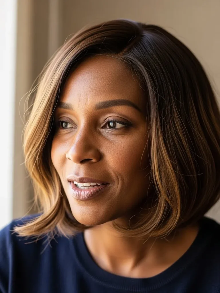 This sun-kissed bob feels vibrant and warm, which I think makes it super flattering on all skin tones. The highlights brighten up the face, while the layers create just enough texture to make the style feel dynamic. It’s perfect for anyone who wants a fun, fresh, and flattering bob that feels effortless yet chic.