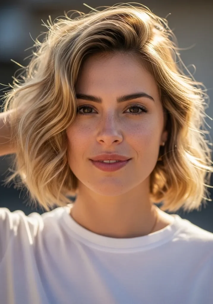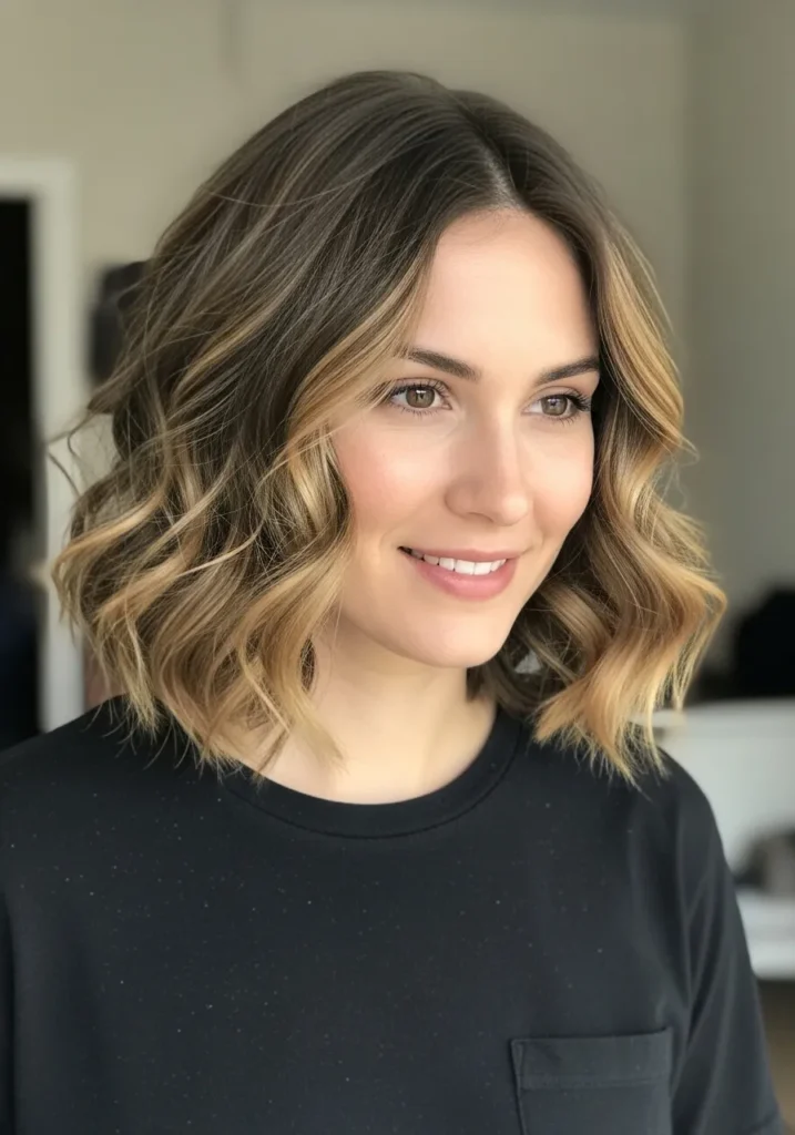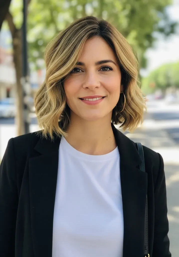 This hairstyle is perfect for anyone who loves a bit of texture but doesn’t want to go overboard. The subtle waves add just enough body to the hair, while the color brightens up the face and makes you feel like you’re always ready for a sunny day. I love how it pairs with a simple, casual look!