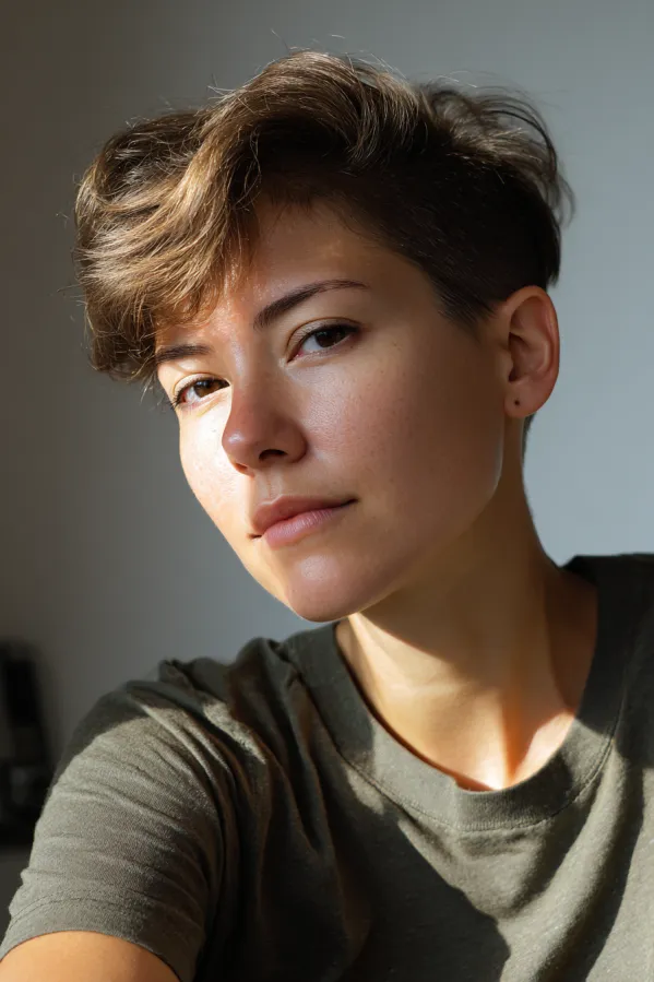 Short tomboy hairstyles really shine when the color adds depth and dimension. I always notice how a soft brunette with subtle highlights makes layers pop without looking too busy. It keeps the overall vibe natural but still interesting.
