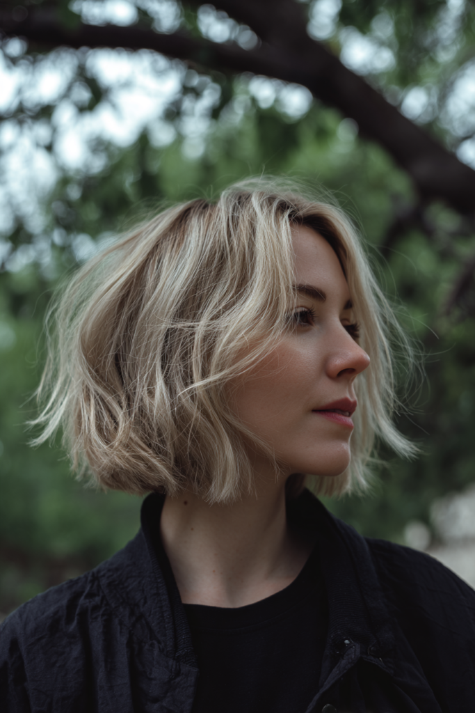 I am head over heels for this look because it brings so much personality to a classic shape. If you have ever worried about a bob looking too maternal or prim, this textured version is your answer. It works incredibly well for highlighting a strong profile and adding some serious height to the crown area. I love that it feels intentional and bold without requiring you to spend hours with a curling iron to get that perfect undone vibe.