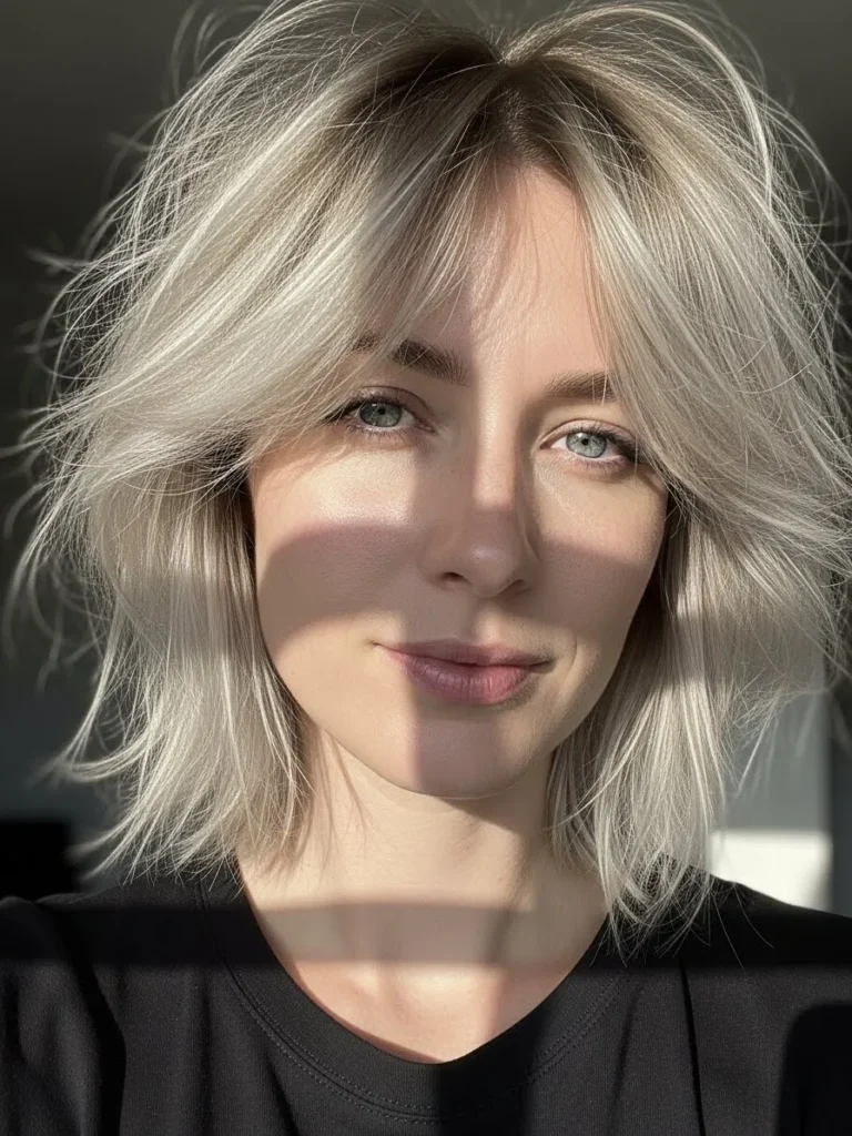 If you’re into styles that feel modern with a gentle touch, these cool ash blonde choppy bobs might steal your heart the way they stole mine.