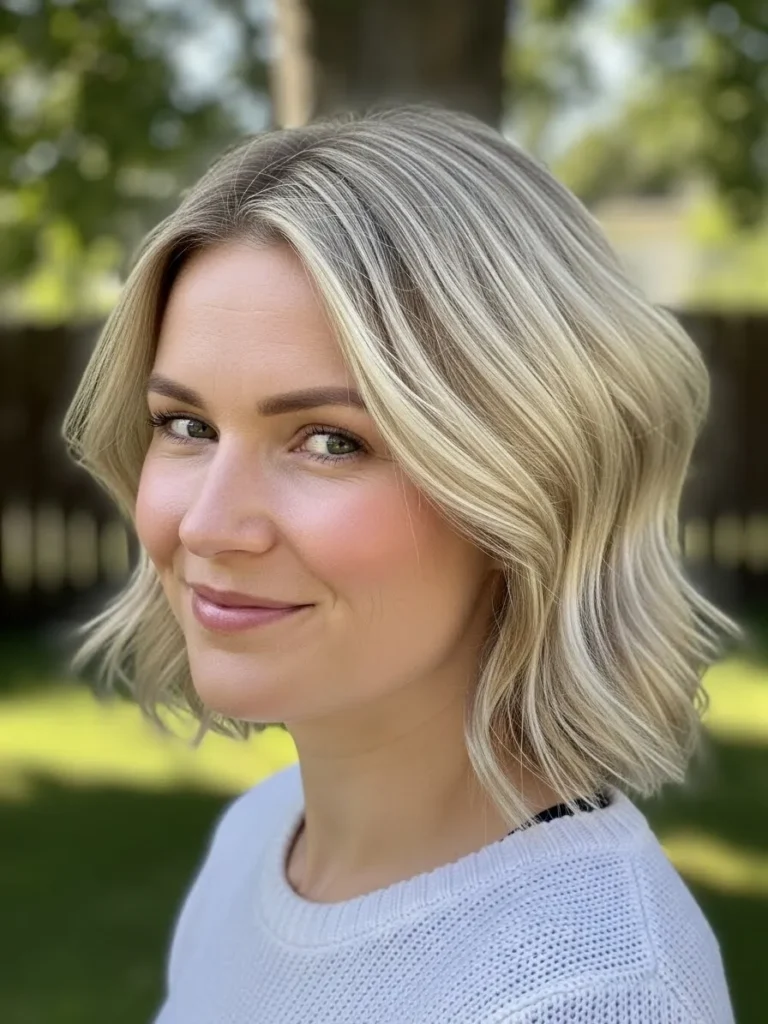 Wavy Ash Blonde Bob With Soft Tone Highlights