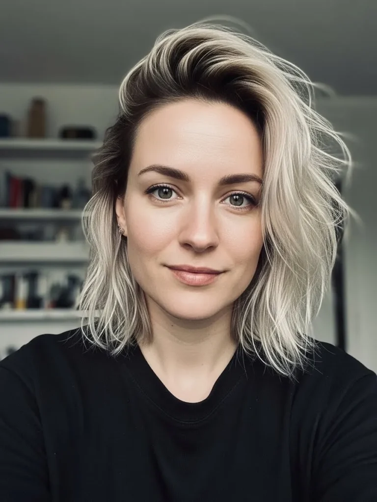 I love this hairstyle because the lift at the front gives instant volume without any real effort. The ash blonde tone adds a cool softness that works with everything. It is an easy style for days when I want something that feels naturally stylish.