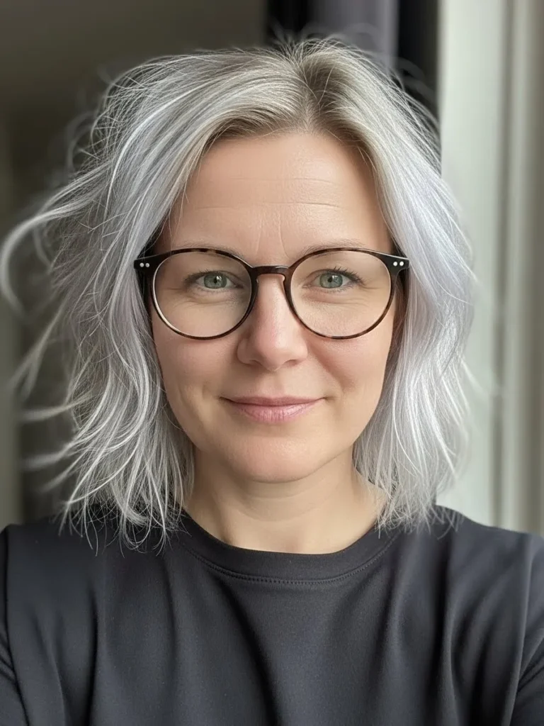 I love this look because it has that perfect undone energy that still feels polished. The texture makes my hair look fuller without trying and the silver ash tone gives such a cool glow. It is one of those styles that works on busy days because it actually looks better when it is a little imperfect.