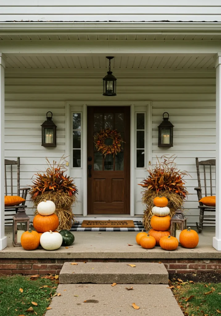 Classic Front Porch with Pumpkin Stacks