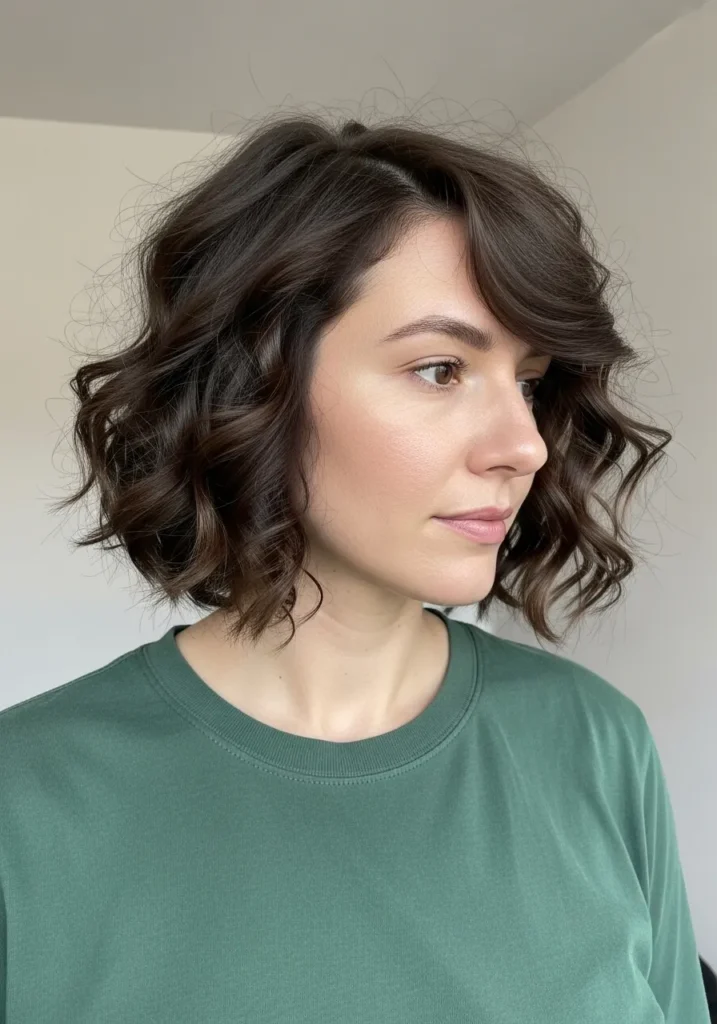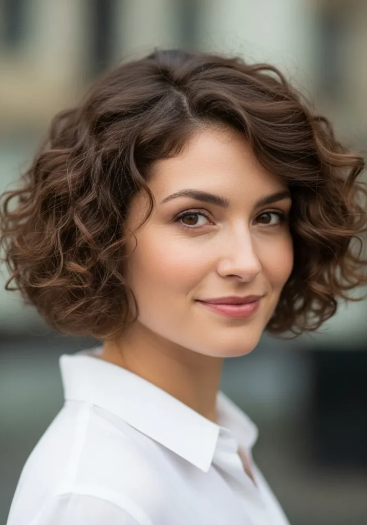 I love how this kind of curly bob gently softens stronger angles because the curls fall in such a carefree way. The texture adds width in the right places and takes the edge off a square jaw without hiding it. It makes me feel polished without trying too hard, and honestly there is something so confidence boosting about a cut that looks stylish even on the days when I barely have time to scrunch in a little product.