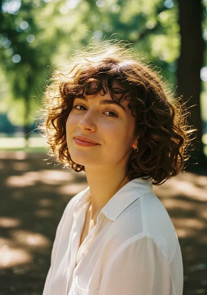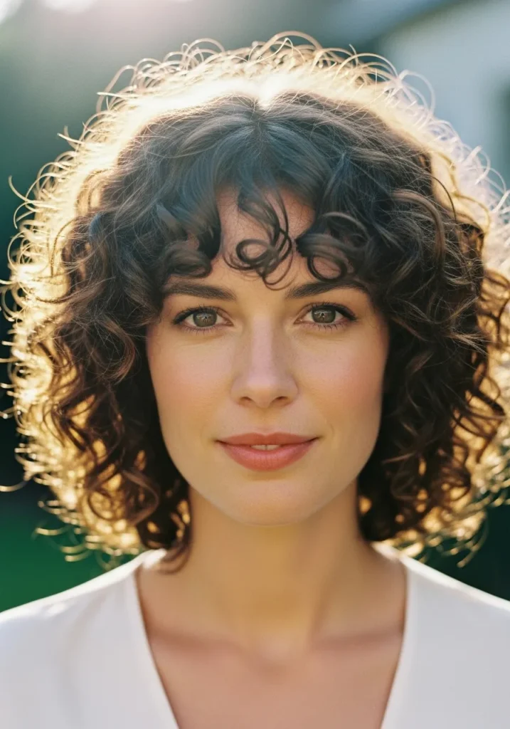 I love how this kind of curly bob gently softens the sharper lines of a square face. The bouncy curls add movement which keeps my features from feeling too structured. The little wisps around the forehead make the whole look feel playful which honestly helps me look more relaxed even on days when I’m anything but. It is the kind of hairstyle that feels easy and flattering all at once which is my favorite kind of magic.