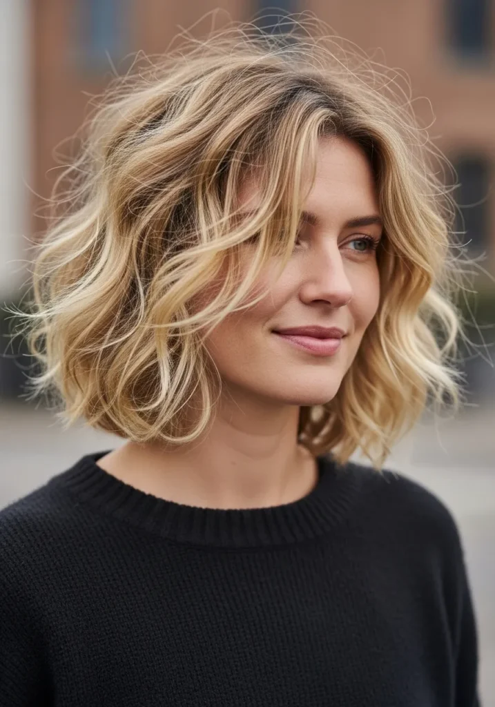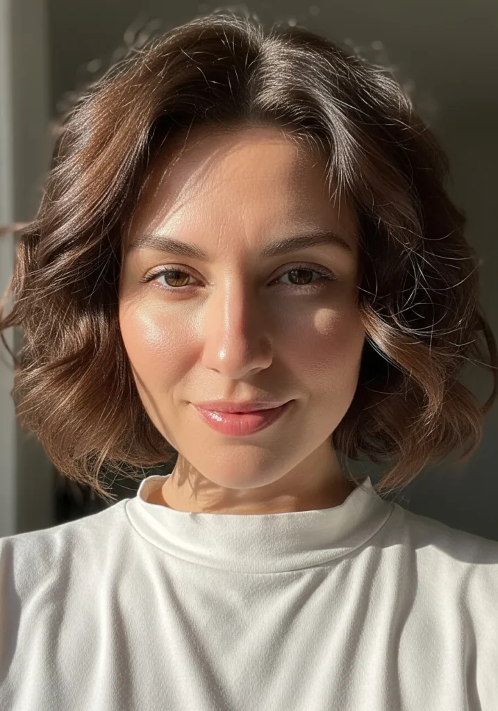 I love how this look naturally softens the angles of a square face. The curls create rounded edges that balance sharper lines and the off-center movement adds just the right hint of asymmetry. It feels polished without trying too hard and that is always my favorite combination. This is the kind of bob that makes me feel put together the moment I step out the door.