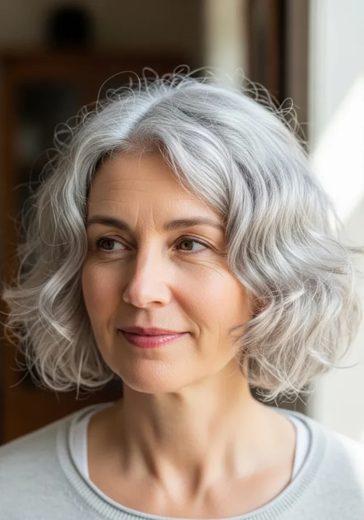 I love how this hairstyle feels polished without trying too hard. The middle part opens up the face in such a gentle way and the curls bring just the right amount of texture. It’s one of those styles that makes me feel confident and put together even on days when I’m keeping things simple. The soft silver shade also adds this pretty glow that always catches the light in the best way.
