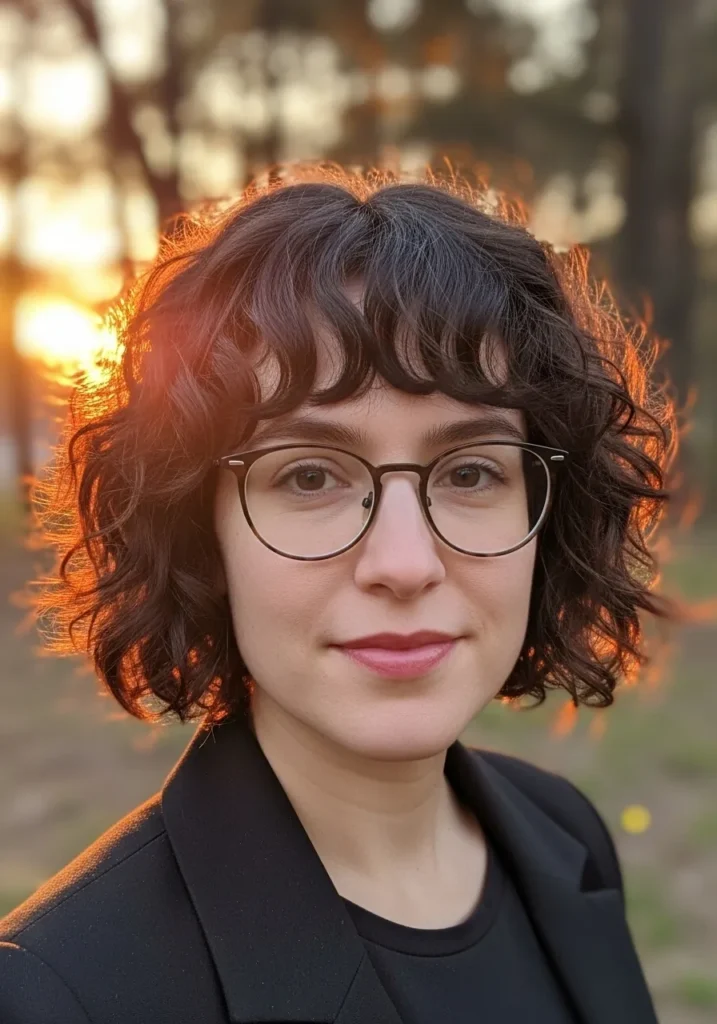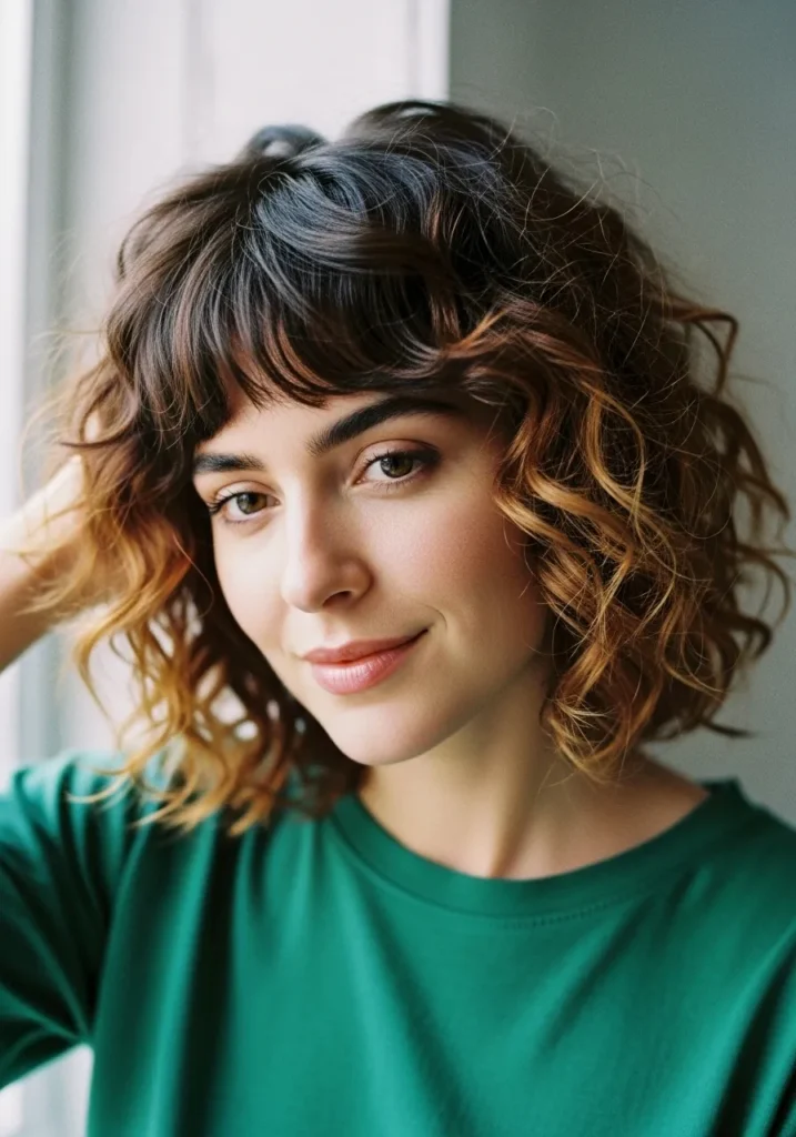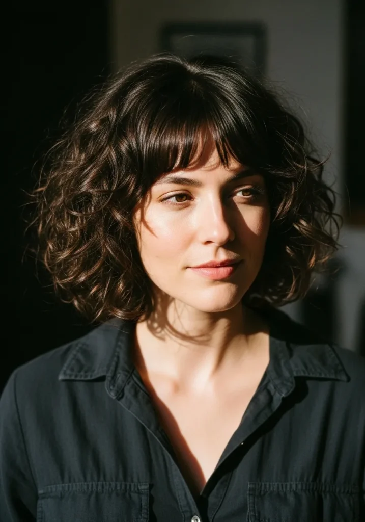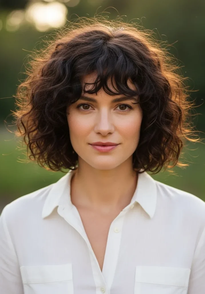 Soft Tousled Curly Bob with Wispy Bangs