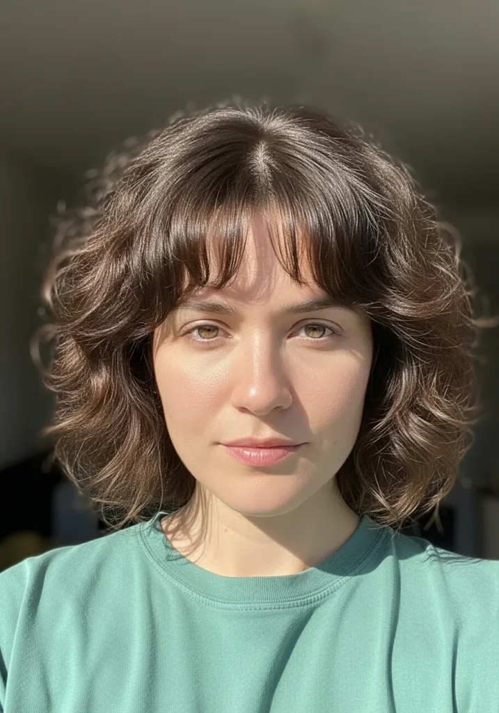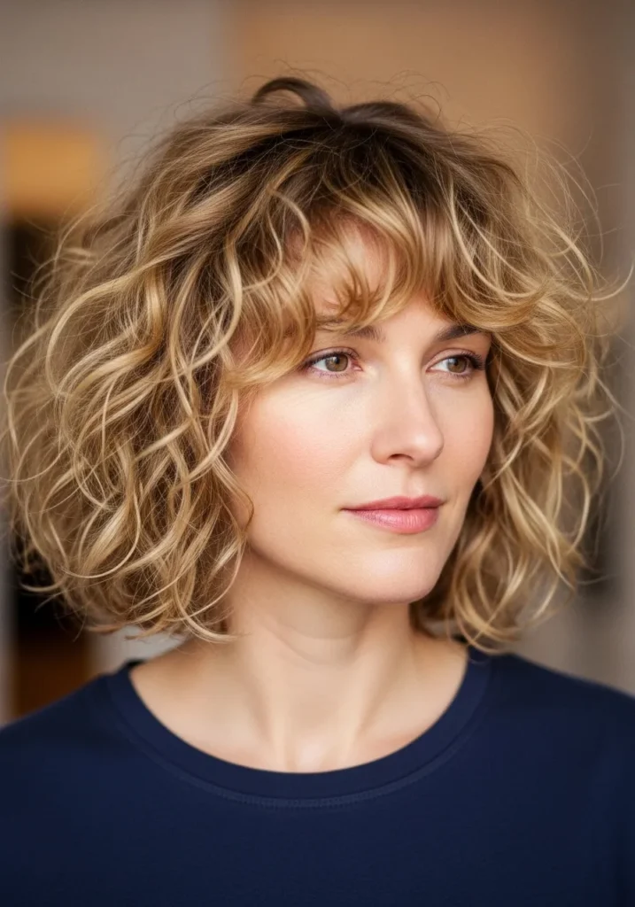 Soft Tousled Curly Bob With Wispy Fringe
