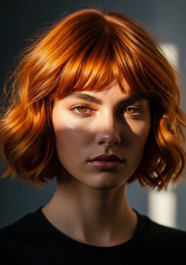 I love how this kind of bob instantly brightens my whole face. The curls create such a pretty frame and the bangs make my features feel softer without hiding anything. It has that effortless look we all wish came naturally. Plus the warm copper tone gives the whole style a gorgeous glow that makes me feel like I just stepped out of golden hour lighting even on days when I definitely didn’t.