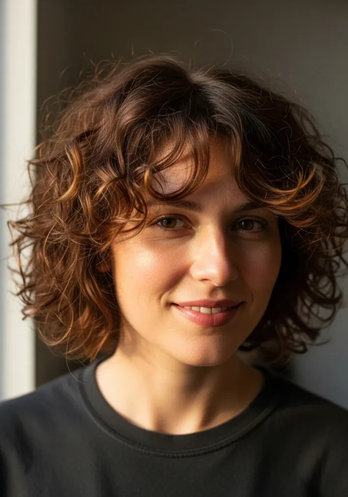 I love this kind of bob because it gives me that perfect mix of volume and softness without requiring a whole production in the morning. The highlights frame the face in such a flattering way that I swear it almost feels like a built-in glow filter. If you’re into hair that looks fun and lively but also easy to manage, this type of layered curly bob is such a confidence booster.