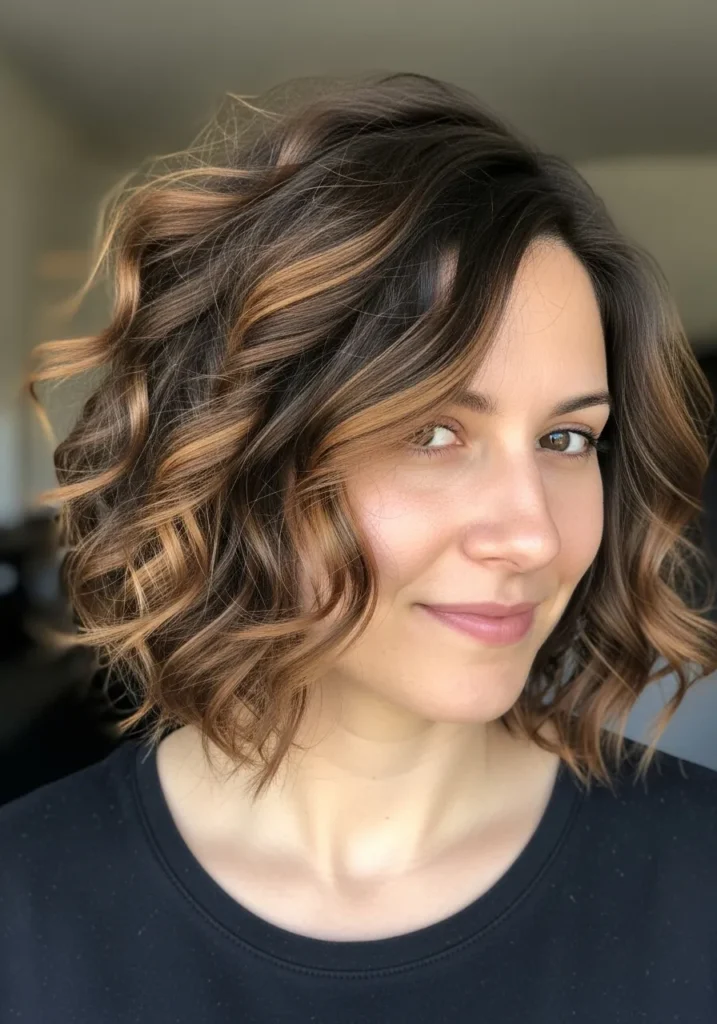 I love how this kind of bob instantly makes me feel polished without trying too hard. The layers keep the curls from falling flat and the highlights add that little bit of glow that makes my hair look fuller. If you’re into a style that looks chic on busy days and still feels playful on good hair days this one is such a winner.