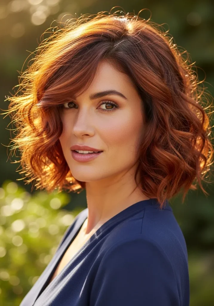 I love how this kind of bob instantly makes me feel put together without trying too hard. The curls keep things fun while the layers stop the shape from feeling heavy. The copper shade adds a bright pop that somehow flatters my skin even on days when I’m running on two hours of sleep. It is one of those styles that makes me feel chic in the simplest way and I adore any hairstyle that does that for me.