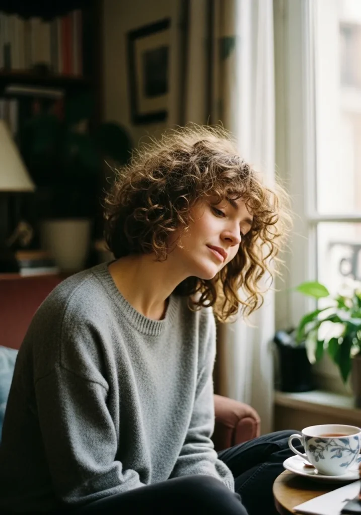 I love how this kind of bob gives my face instant structure without making anything feel too sharp. The curls soften everything and the fringe adds that little touch of mystery that makes me feel like I just stepped out of a pretty corner café. It’s the kind of hairstyle that boosts confidence on even the most chaotic mornings because it still looks stylish when the curls decide to do their own thing.