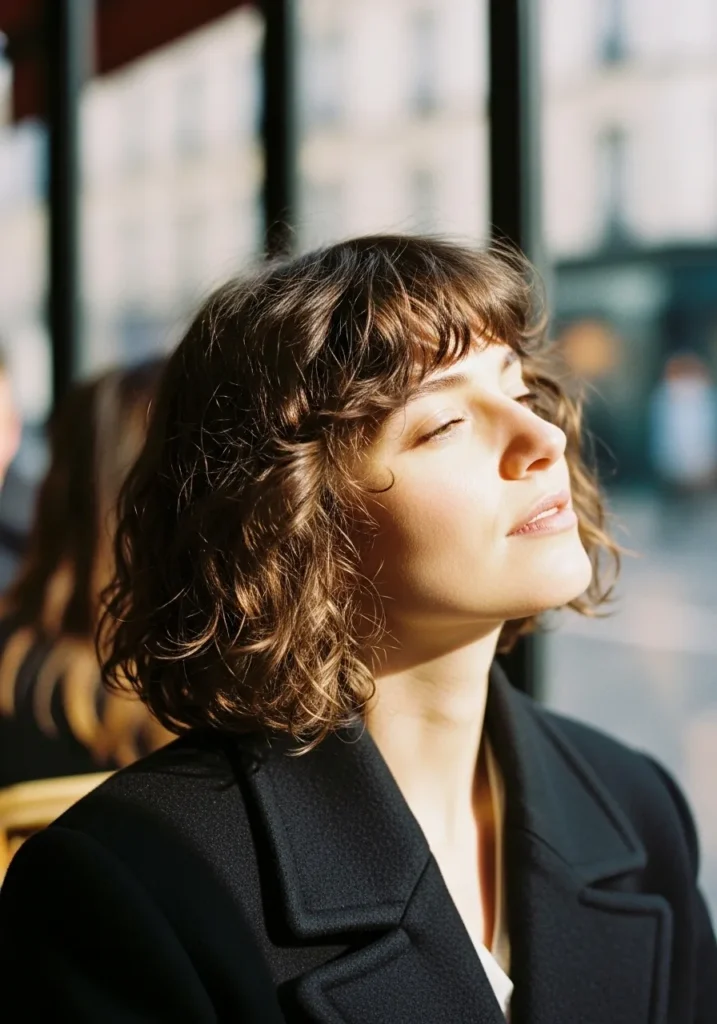 I adore how this kind of bob instantly makes me feel like I somehow woke up in Paris. The softness around my face adds a touch of romance and the airy curls make everything feel relaxed and uncomplicated. I love that it looks polished but never overdone. On busy mornings it gives me that little boost of confidence because the style feels intentional even when I barely touched it.