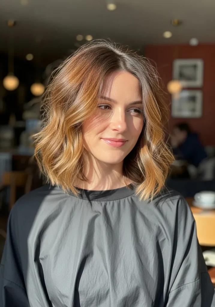 I love this kind of lob because it flatters without trying too hard. The soft layers keep my hair from feeling heavy and the warm highlights brighten my face even on days when I’m running purely on dry shampoo and good intentions. It feels polished but still casual enough for everyday life which makes it one of those styles I reach for again and again.