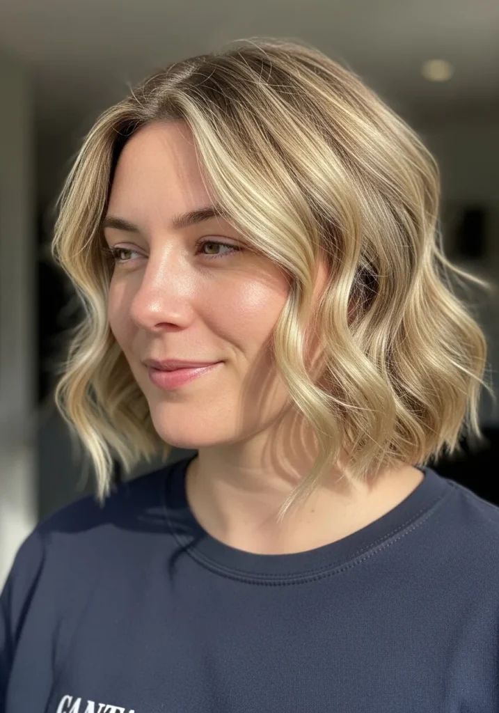 I love this kind of wavy lob because it instantly makes me feel like I put in way more effort than I actually did. The face framing pieces brighten everything and add that little touch of softness I always look for. It feels chic without trying too hard and it works on the days when I want something cute but still easy enough to manage before running out the door.