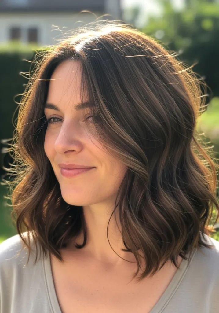 I love this kind of hairstyle because it strikes that magical balance between casual and chic. It frames the face in such a flattering way and gives me that breezy confidence boost without needing a whole glam session. It’s the sort of lob that makes me feel put together even when I’m just running errands or grabbing coffee, and honestly, who doesn’t want hair that works this hard while still looking soft and relaxed.