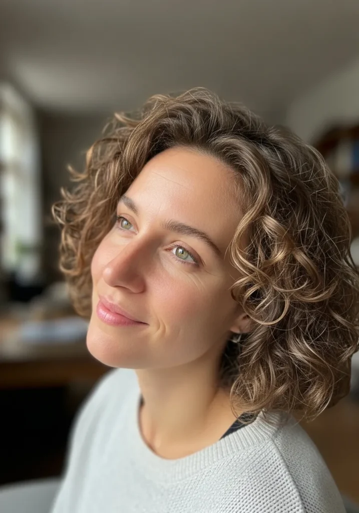 Soft Curly Bob with Subtle Highlights
