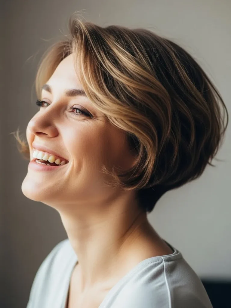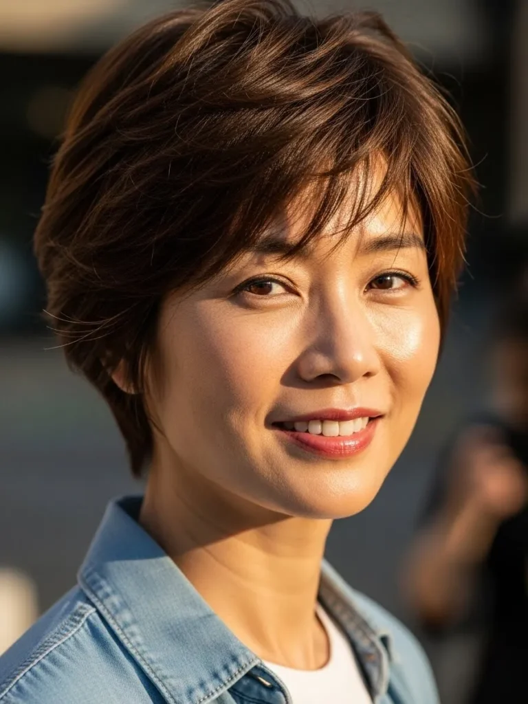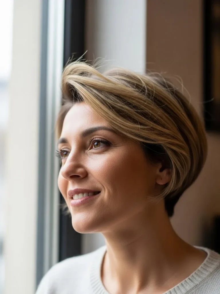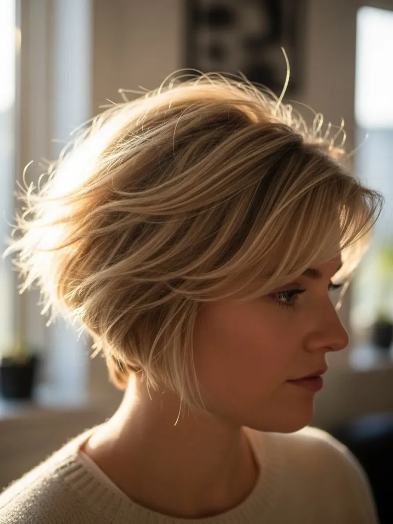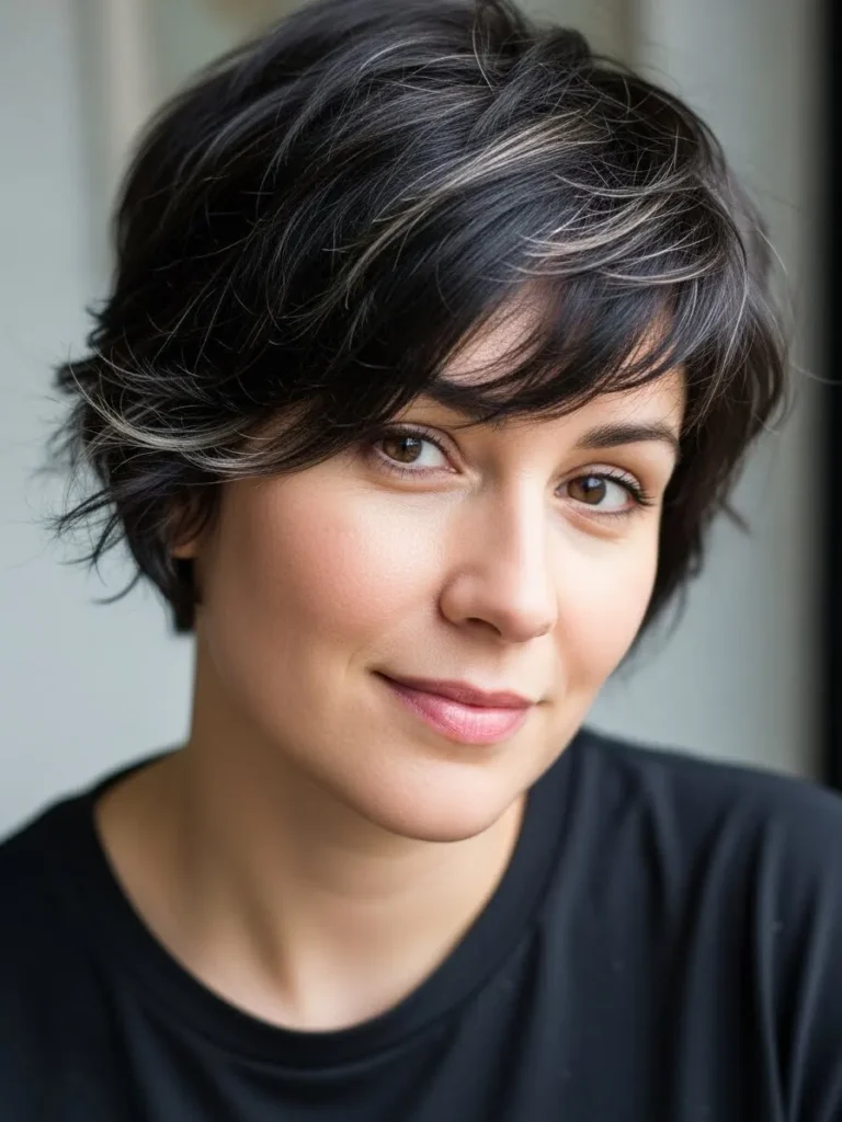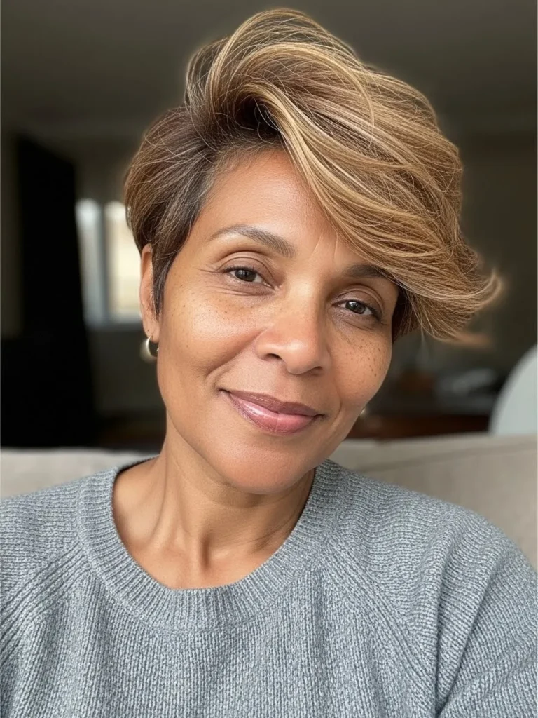 This style is perfect for those who love a low-maintenance pixie with a little extra body. The layers provide just the right amount of volume, and the highlights add a beautiful sun-kissed effect that brightens the face. It’s both chic and practical, making it perfect for daily wear.